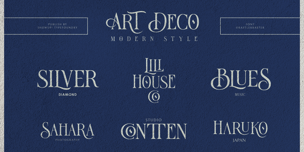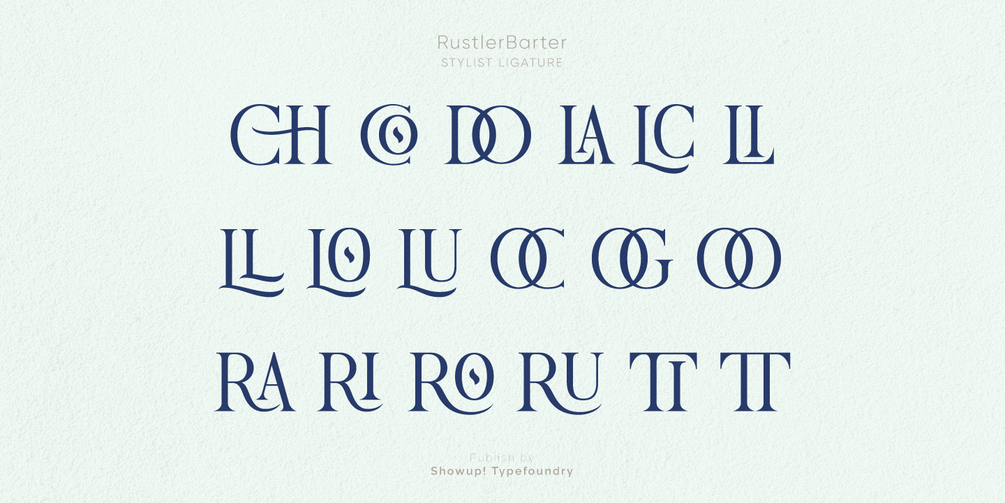 Rustler Barter® is an elegant display font inspired by the Art Deco era. It perfectly represents vintage aesthetics in a modern and minimalist way. The font includes special uppercase letters, alternate characters, and beautiful ligatures. Furthermore, the font is perfect for elegant logo design, packaging, or invitation cards.